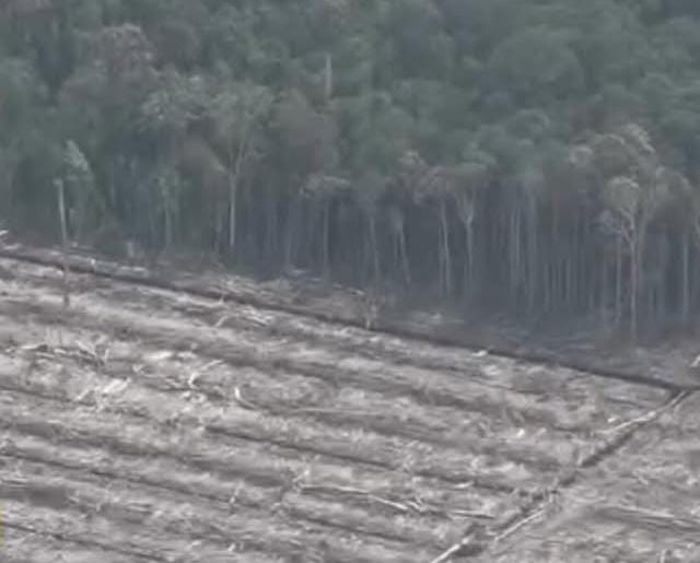 Dari ketinggian, tampak hamparan lahan gundul yang kontras dengan citra hutan tropis yang selama ini dikenal sebagai paru-paru dunia.