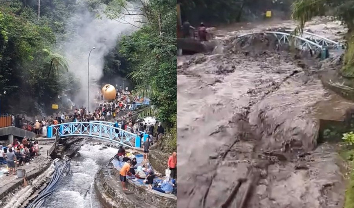 Para wisatawan diarahkan menjauh dari area kolam dan titik-titik rawan yang berpotensi terdampak banjir bandang.