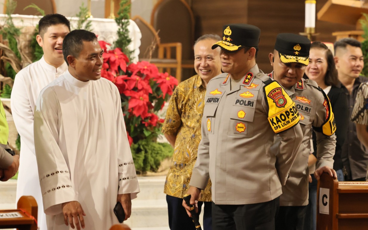 Setibanya di gereja, Irjen Pol. Asep Edi Suheri disambut oleh pengurus gereja, yakni Romo Kesar Yanto selaku Pastor Kepala dan Romo Stephanus Tino.