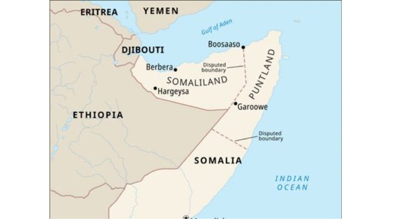 Somaliland terletak di antara kawasan gurun Afrika Timur dan Teluk Aden yang memosisikan diri sebagai entitas yang mengelola pemerintahan secara mandiri.
