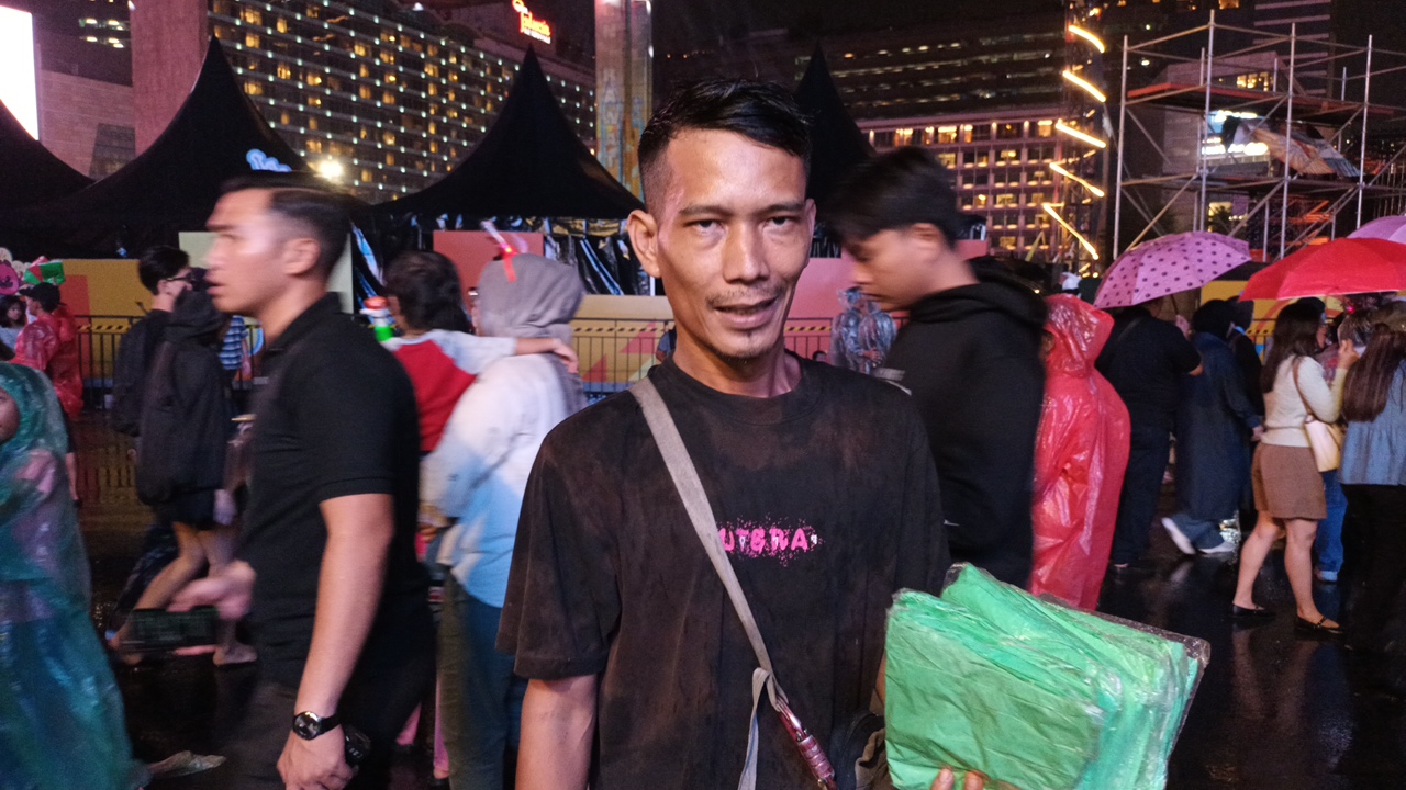 "Emang udah niat jualan jas hujan," katanya saat ditemui di lokasi.
