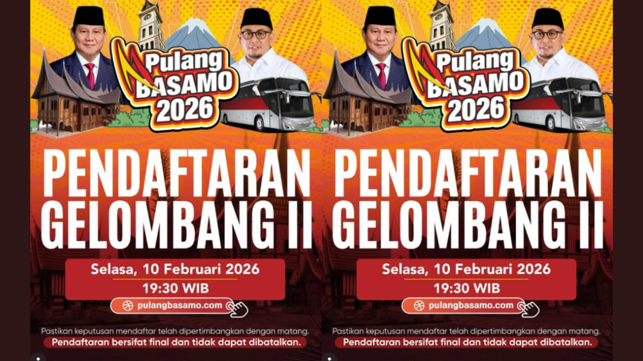 Sedikit informasi tambahan, Pulang Basamo 2026 adalah program mudik gratis yang diinisiasikan oleh Presiden RI Prabowo Subianto bersama Anggota DPR RI Dapil Sumbar I Andre Rosiade mewakili Partai Gerindra.