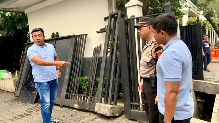 Dalam foto yang diterima Disway.id, pagar rumah JK rusak hingga terlepas dari relnya.