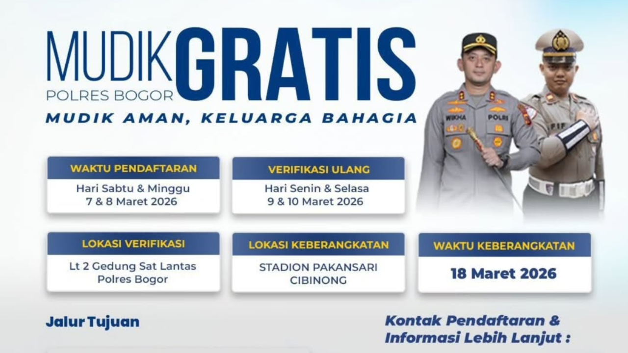 Supaya tidak ketinggalan, berikut informasi syarat dan link daftar mudik gratis Polres Bogor 2026.