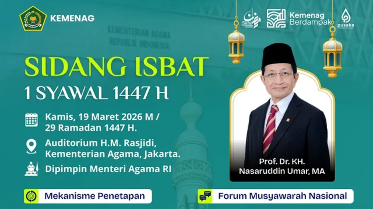 Dilansir laman resmi Kemenag, sidang isbat 1 Syawal 1447 H akan menjadi penentu penetapan Lebaran 2026 di Indonesia.
