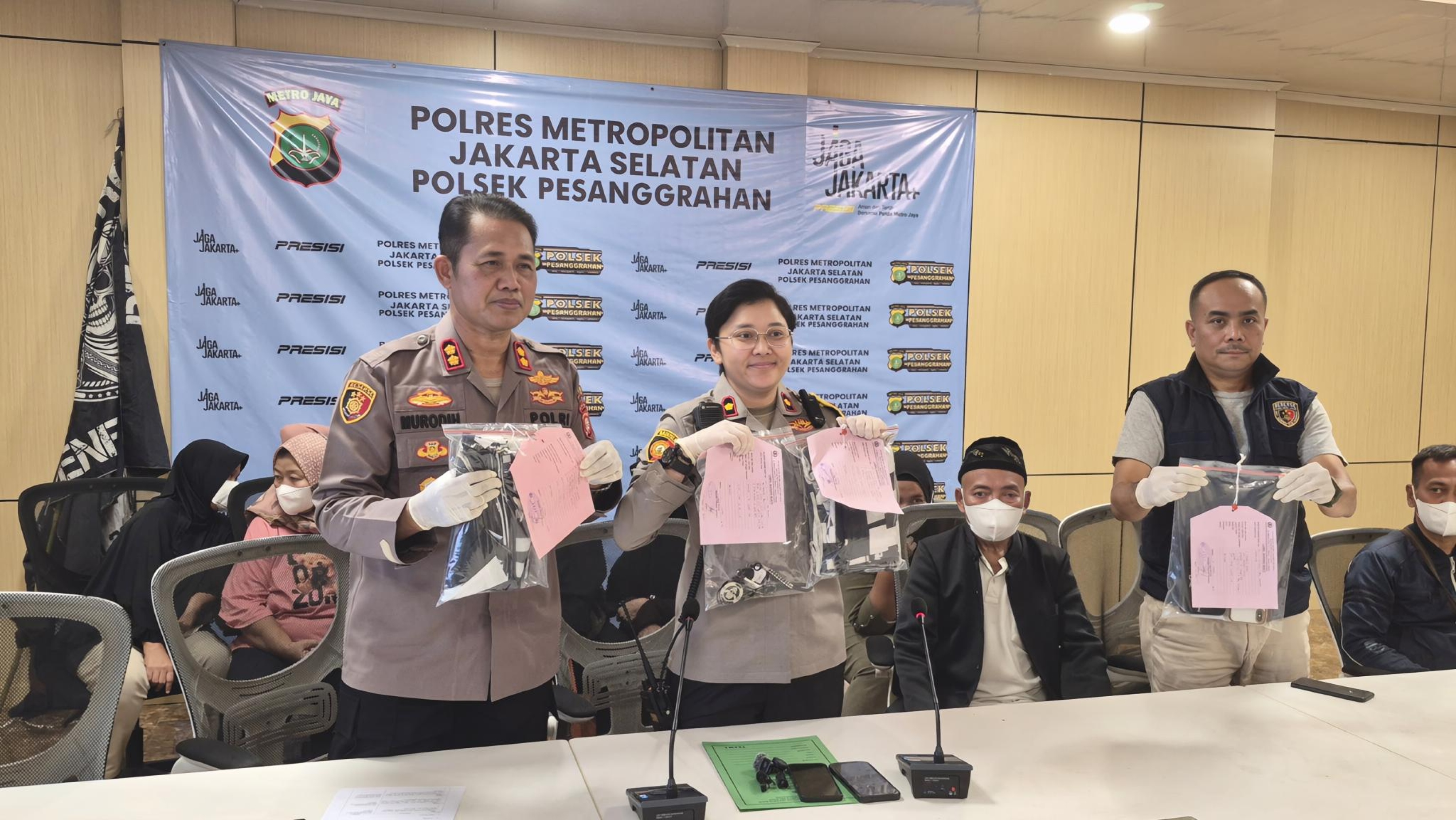 Dari pengungkapan ini, ditemukan berbagai barang bukti, antara lain 2 buah bendera geng Destroy, 1 buah bendera geng Warji Boys Jakarta, 6 buah bendera geng Asyrod, 6 unit handphone, serta 4 unit motor.