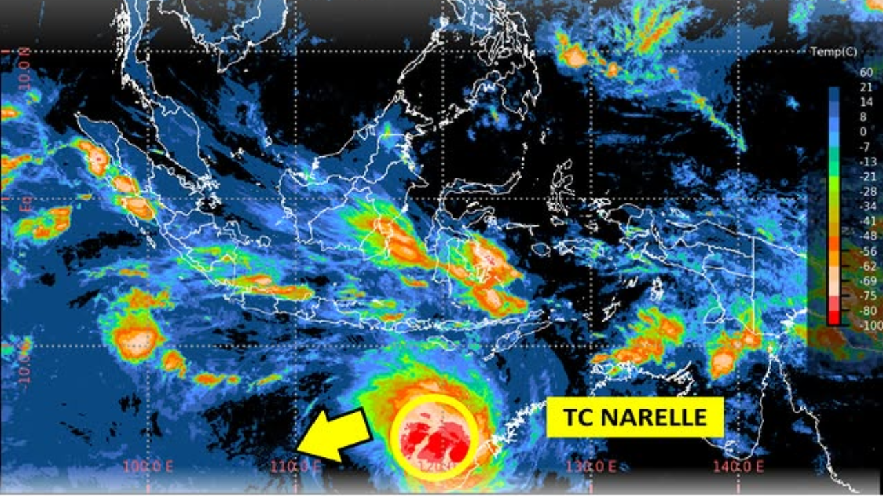 Dampak Siklon Tropis Narelle tidak hanya melanda Indonesia, namun juga Australia.
