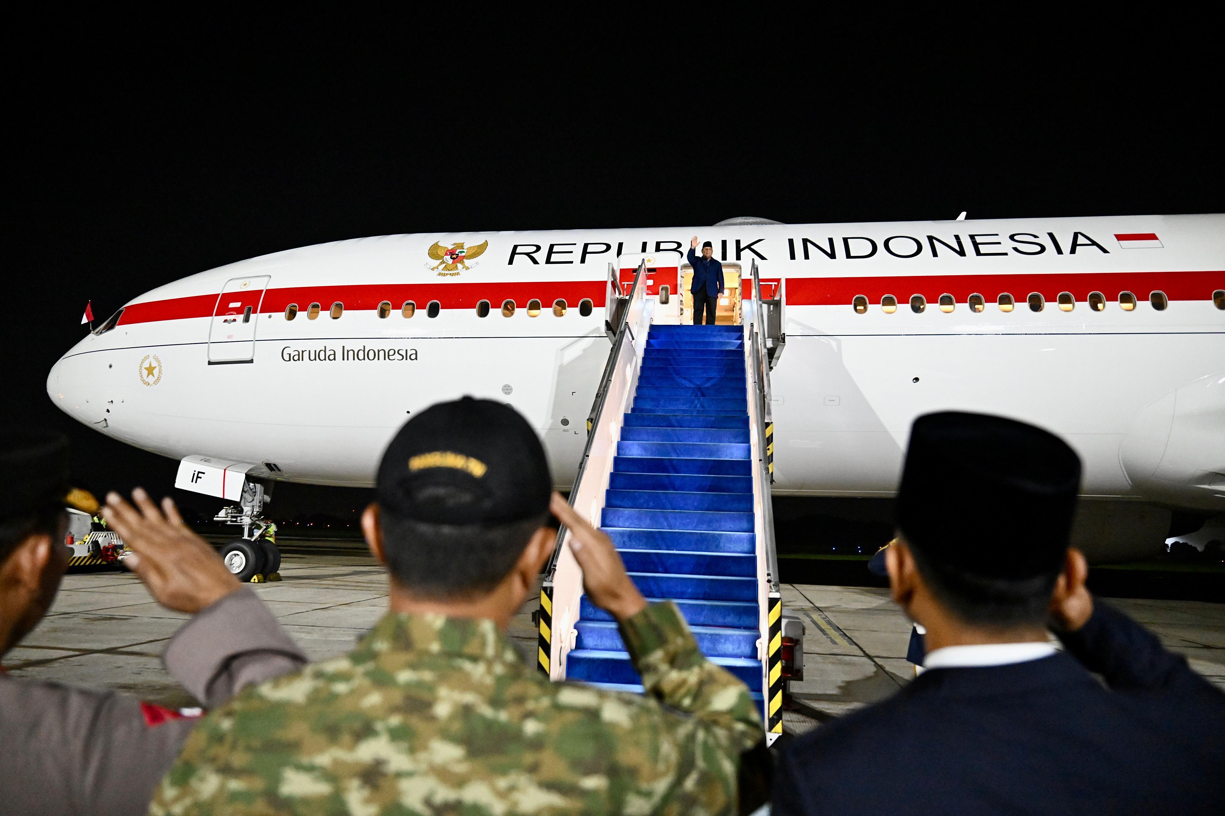 Untuk diketahui, Prabowo lepas landas dari Pangkalan TNI AU Halim Perdanakusuma, Jakarta, sekitar pukul 23.10 WIB. Keberangkatan Prabowo dilepas langsung oleh Wakil Presiden Gibran Rakabuming, Menteri Sekretaris Negara Prasetyo Hadi, Panglima TNI Agus Subiyanto, Kapolri Listyo Sigit Prabowo, serta Kepala Badan Intelijen Negara Muhammad Herindra.
