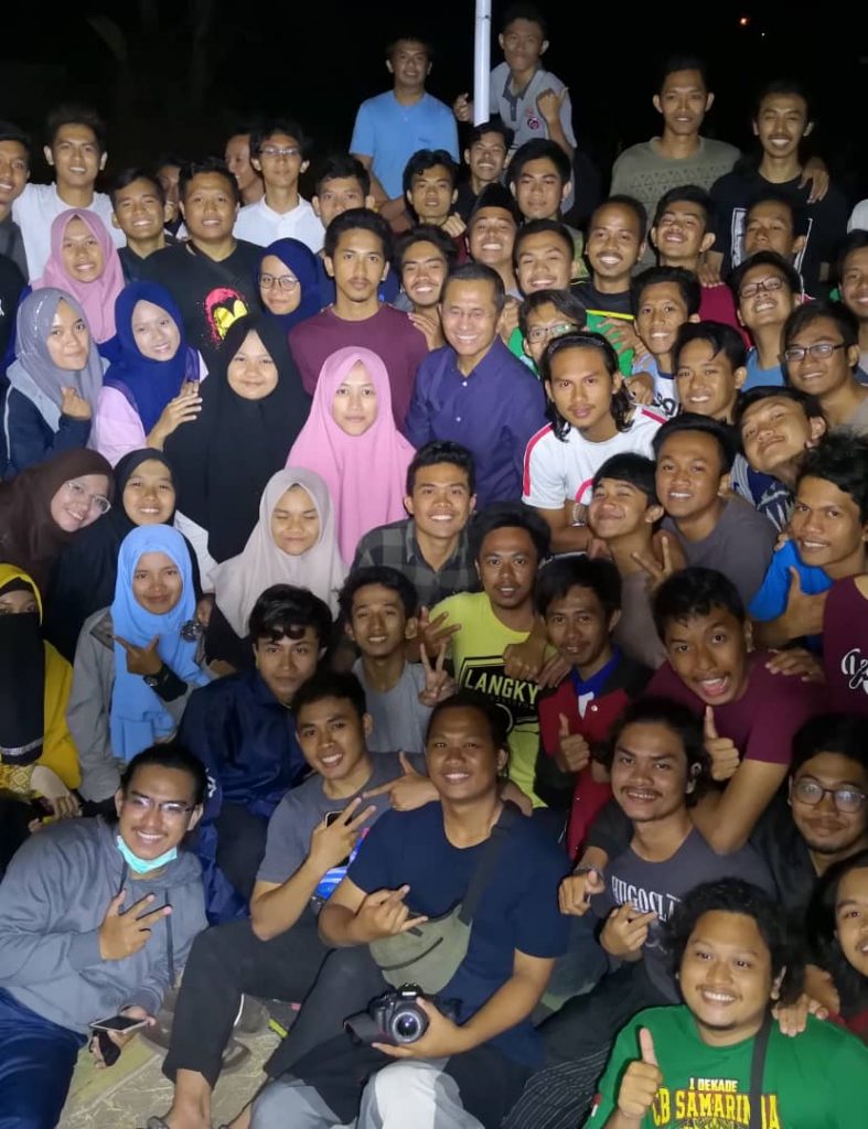 Dahlan Iskan di tengah para mahasiswa di site Lentera Bumi Nusantara di Ciheras.[/caption]
