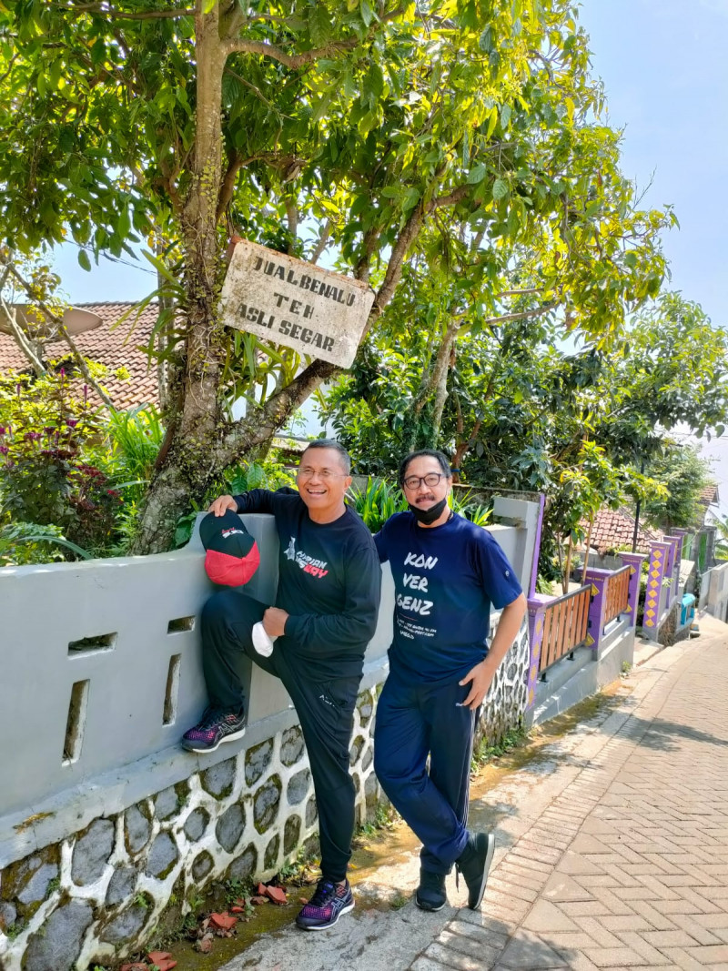 Bersama Imawan Mashuri CEO Ameg (Arema Media Group) Imawan Mashuri di depan pohon teh.
