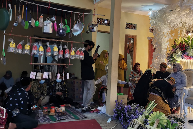 Ia juga bertugas menarasikan seluruh adegan di resepsi itu – dengan background suara gamelan dari HP-nya.