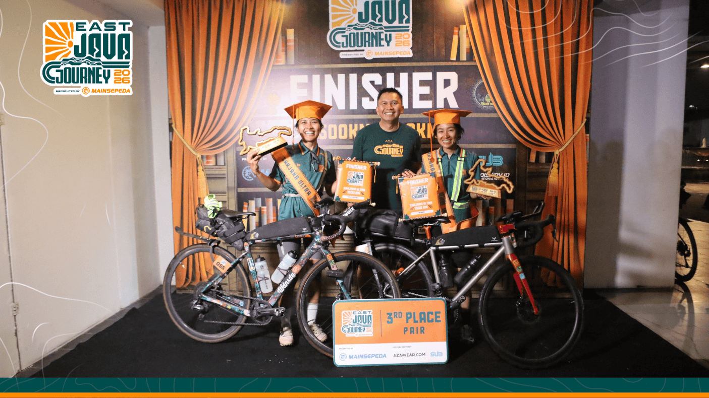 Ivo Ananda saat berhasil finis menyelesaikan tantangan bersepeda 1.500 km di East Java Journey 2026.--