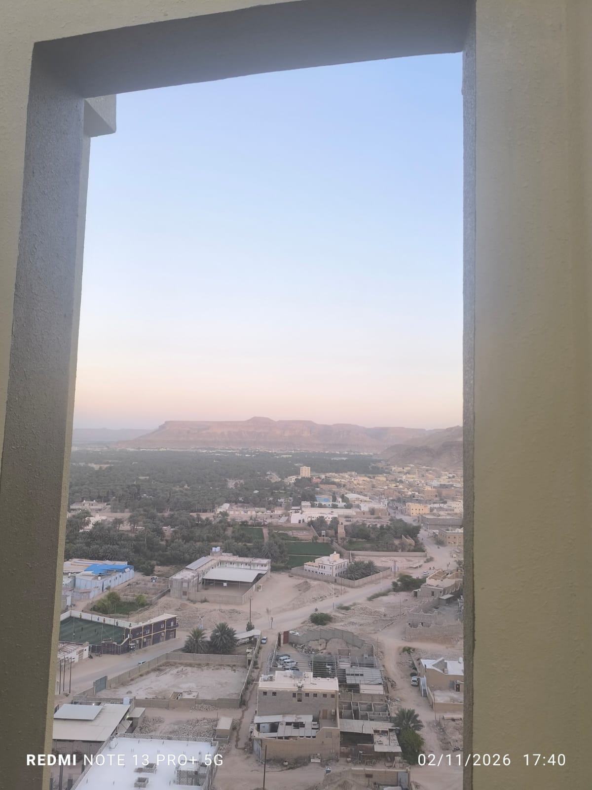 Dari real estate ini saya bisa melihat kota Tarim di bawah sana. Terlihat juga stadion sederhana yang banyak pohon korma di sekitarnya.