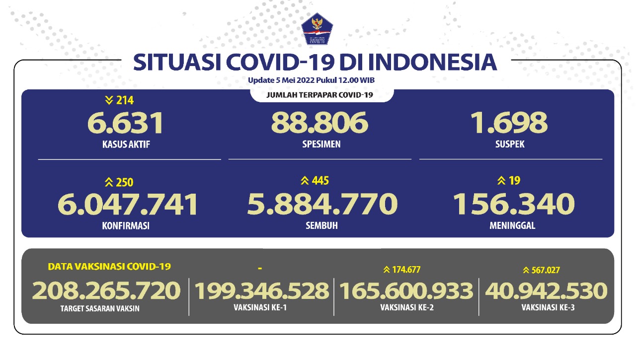 Update Covid-19, situasi sebaran wabah di Indonesia, Kamis 5 Mei 2022-Satgas Covid-19 -disway.id