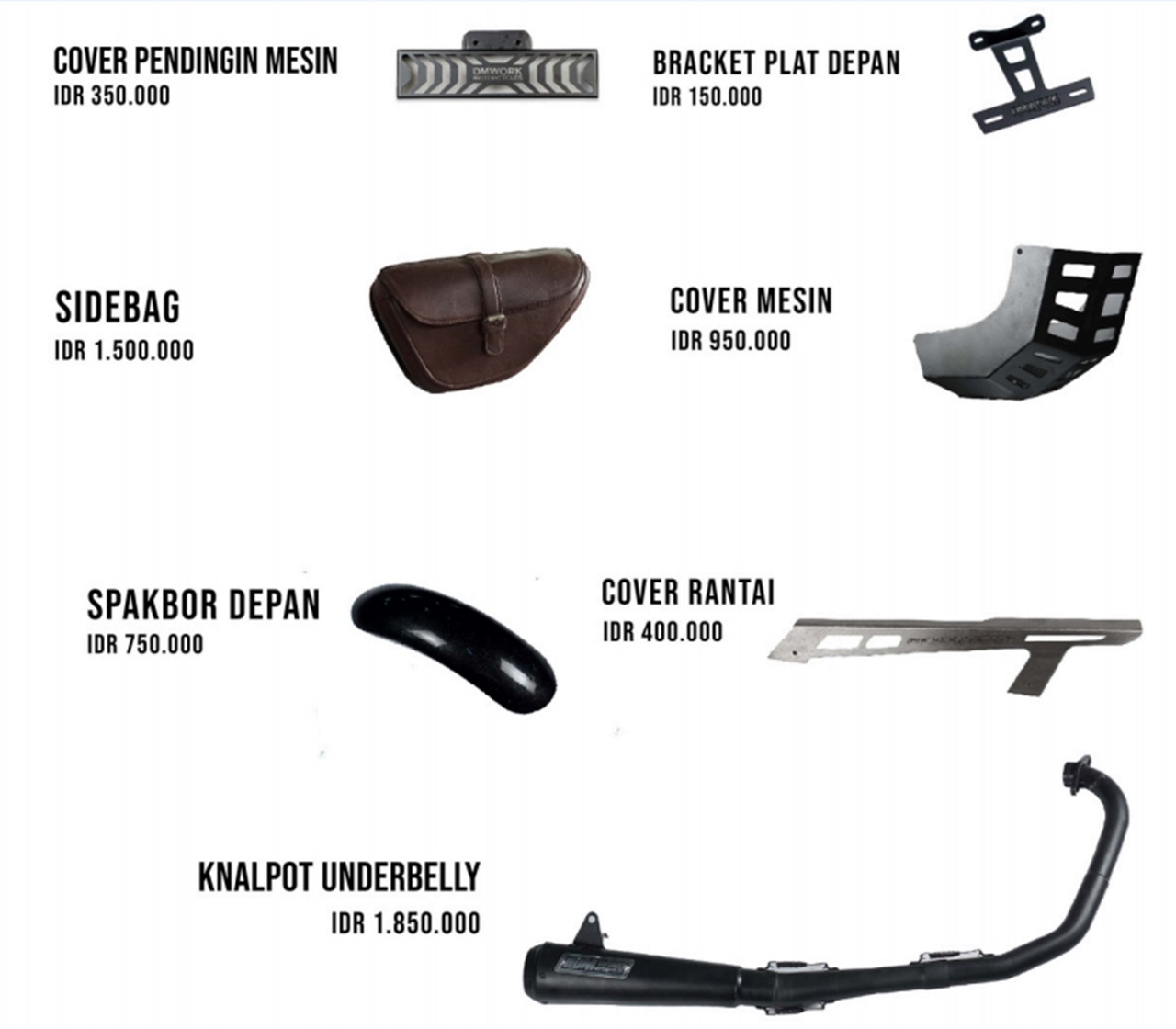 Berikut daftar harga part modifikasi TVS Ronin dari DM Work Motorcycle: