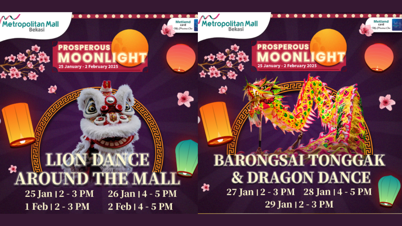 Selanjutnya, di Metropolitan Mall Bekasi warga bisa menyaksikan pertunjukan barongsai dengan tajuk 'Prosperous Moonlight'.