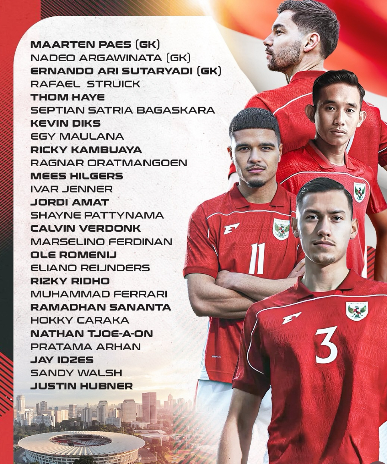 Nama-nama pemain naturalisasi yang familiar seperti Maarten Paes, Jay Izdes, Sandy Walsh, Thom Haye terus bermunculan.