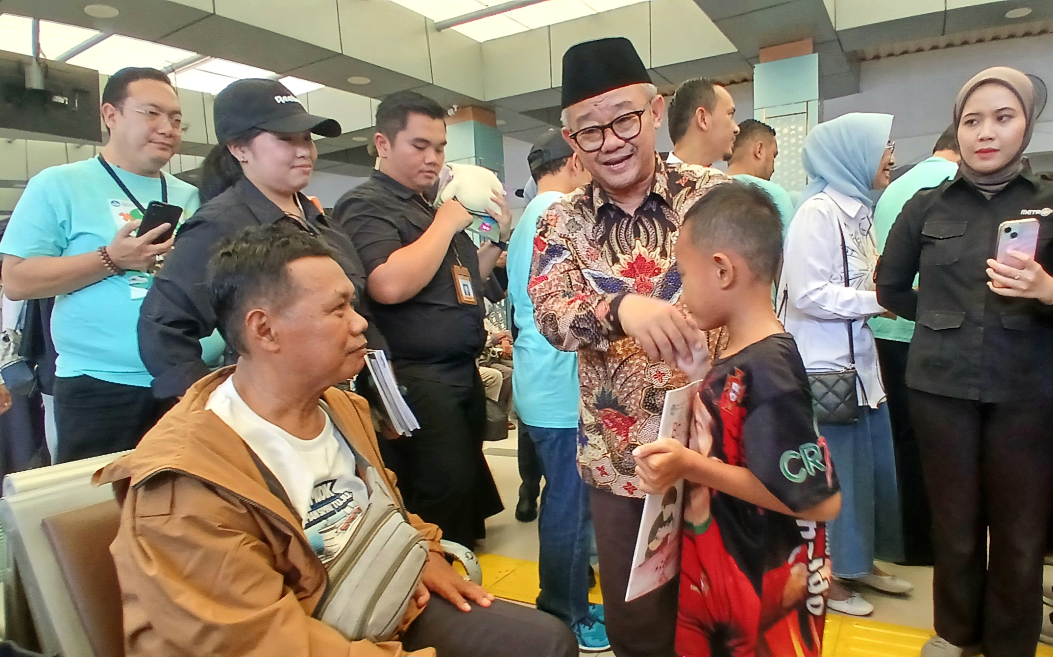 "Alhamdulillah, kita membagikan bahan bacaan untuk anak-anak, terutama yang mudik di Stasiun Pasar Senen ini," ujar Mu'ti usai membagikan buku.