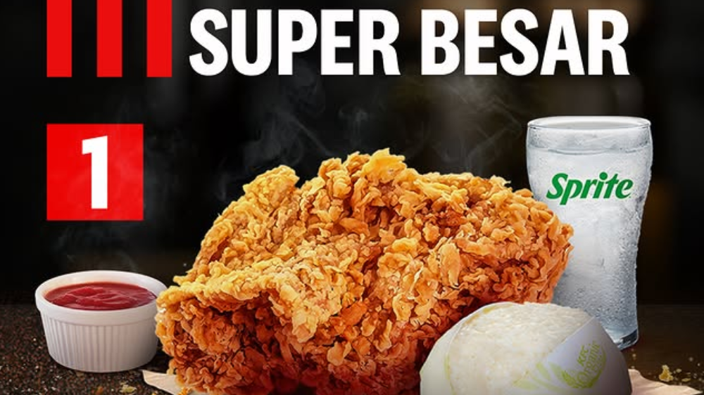 - Super Besar 1 – Rp 34.545* (1 ayam + nasi + Sprite medium)