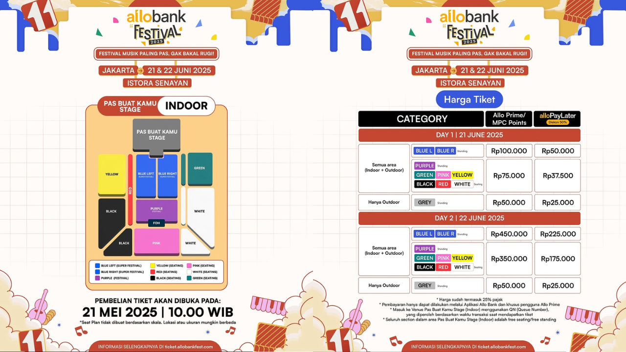 Harga tiket Allo Bank Festival 2025 dijual dengan kategori berbeda, berikut rinciannya: