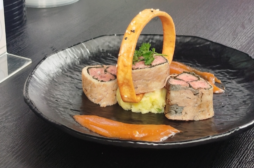 Deretan hidangan unik seperti ayam panggang rempah tropis dengan saus fermentasi lokal, iga sapi bakar dengan infused oil dari daun kemangi, hingga kreasi dessert berbahan gelatin alami dari hasil peternakan.