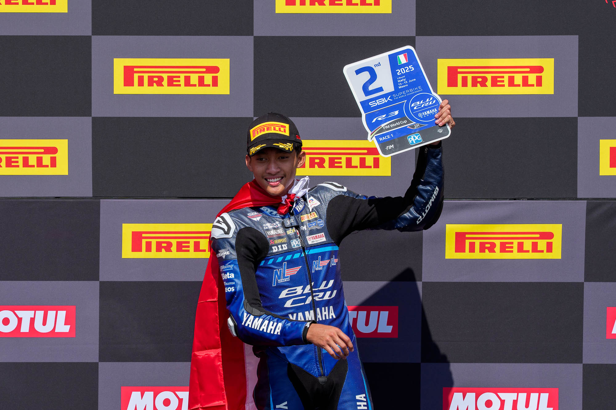 Rider binaan Yamaha Racing Indonesia itu mendapatkan podium 3 pada putaran pertama di Portimao Portugal dan finish ke-2 seri 2 di Misano Italia.