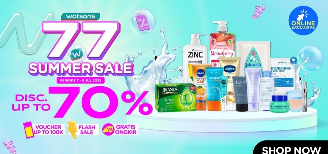 Di tanggal cantik 7 Juli 2025, kamu yang mencari promo Watsons, ada nih deretan penawaran menarik untuk pelanggannya terutama para beauty enthusiast dan penganut healthy lifestyle.--Watsons