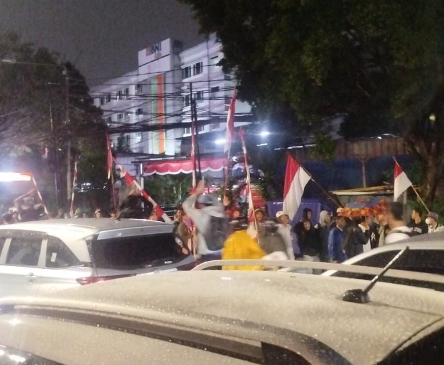 Massa yang berlarian atau berhamburan membuat pengendara jalan terjebak dan tak bisa bergerak.