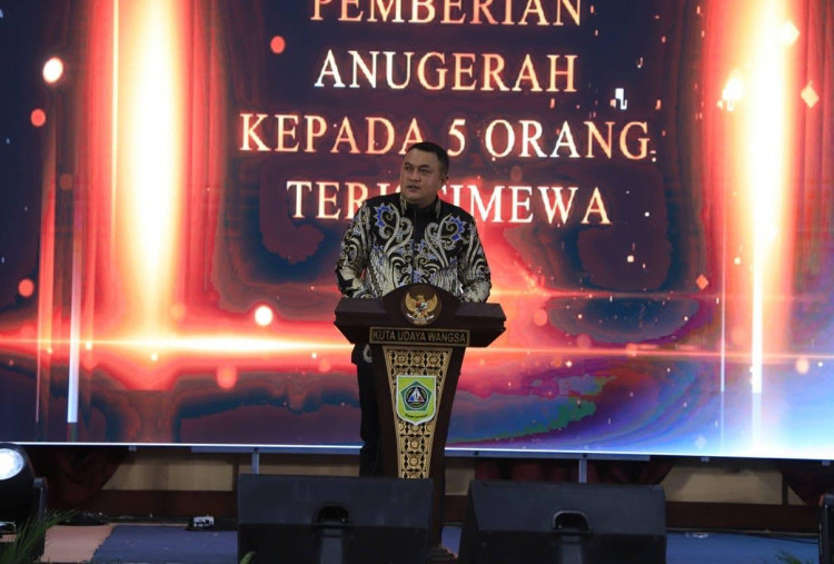 Bupati Bogor, Rudy Susmanto, didampingi Ketua Baznas Kabupaten Bogor, menerima penghargaan kategori Kepala Daerah Pendukung Baznas Tingkat Kabupaten pada ajang Baznas Awards 2025 yang digelar di Hotel Mercure Ancol, Jakarta, Kamis 28 Agustus 2025.-dok disway-