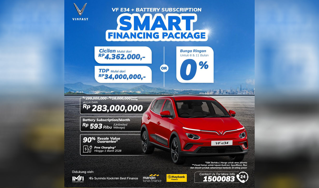 Kebijakan langganan baterai ini juga melengkapi berbagai program penjualan dan purna jual VinFast di Indonesia, termasuk gratis pengisian daya di stasiun V-GREEN, bonus uang tunai dan aksesori, bunga kredit ringan, serta jaminan harga jual kembali hingga 90% setelah enam bulan dan 70% setelah 3 tahun.