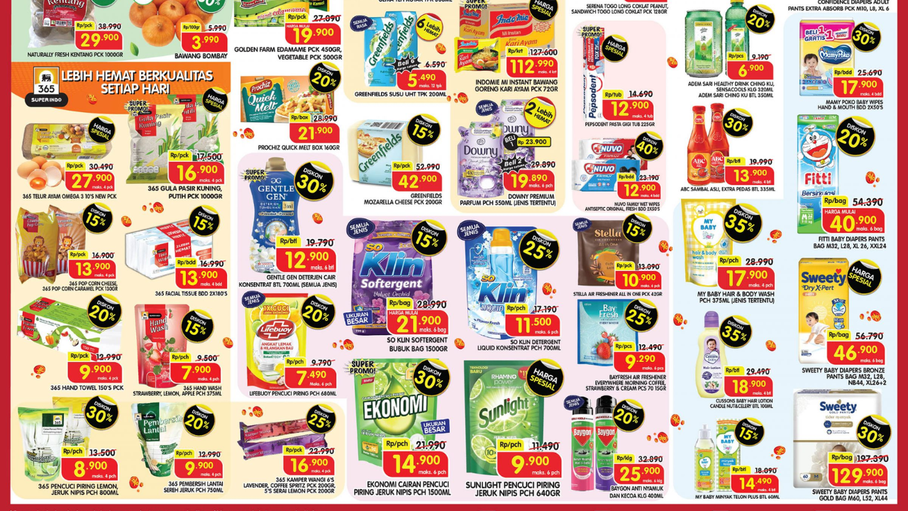 Promo Superindo minggu ini 2025 menawarkan berbagai produk yang diberikan potongan, seperti buah, ayam, daging, ikan, frozen food, minyak, telur, beras, saus, susu, diapers, detergen, hingga sabun pencuci piring.