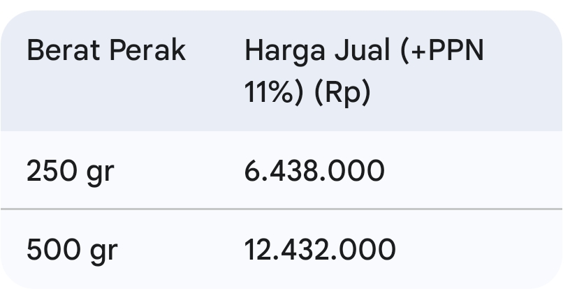 Harga perak hari ini juga menunjukkan angka yang menarik, terutama untuk denominasi besar: