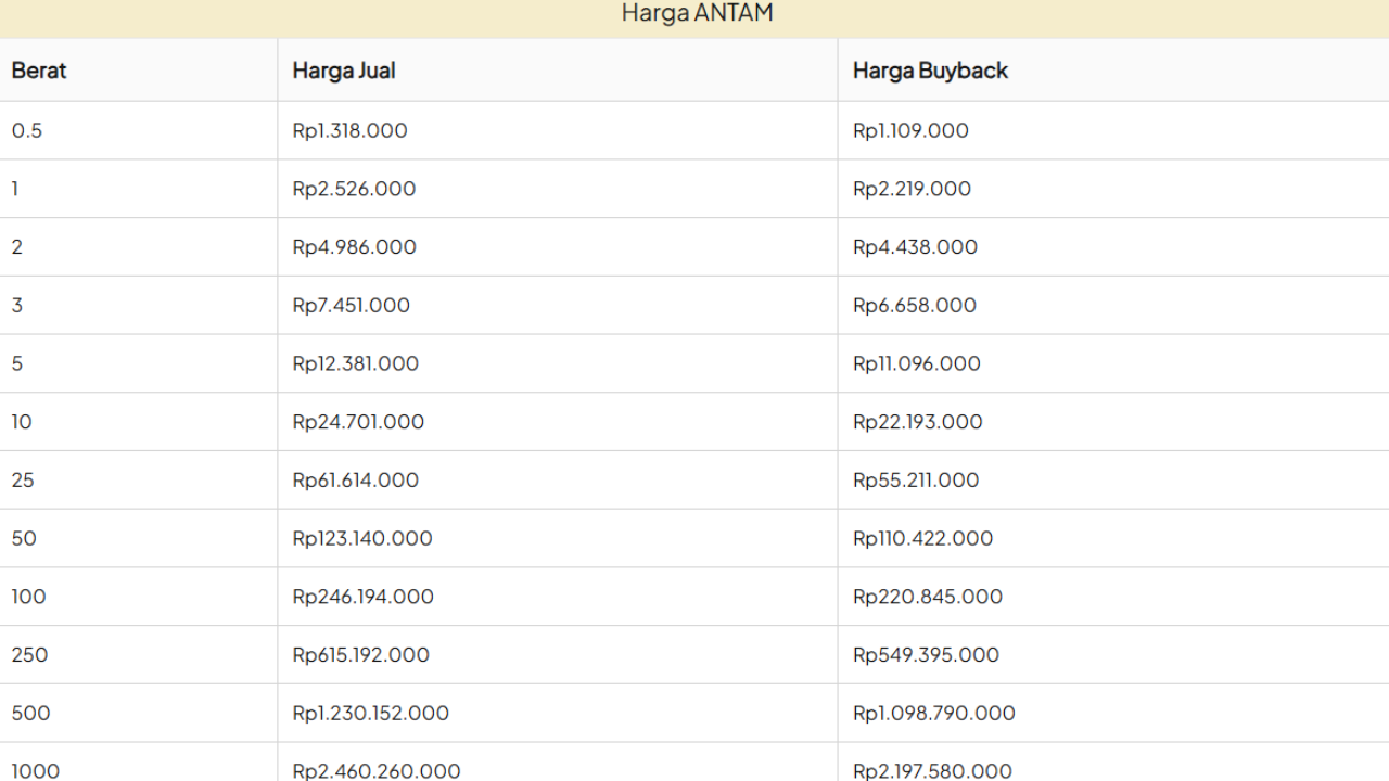 2. Harga Buyback Emas Antam