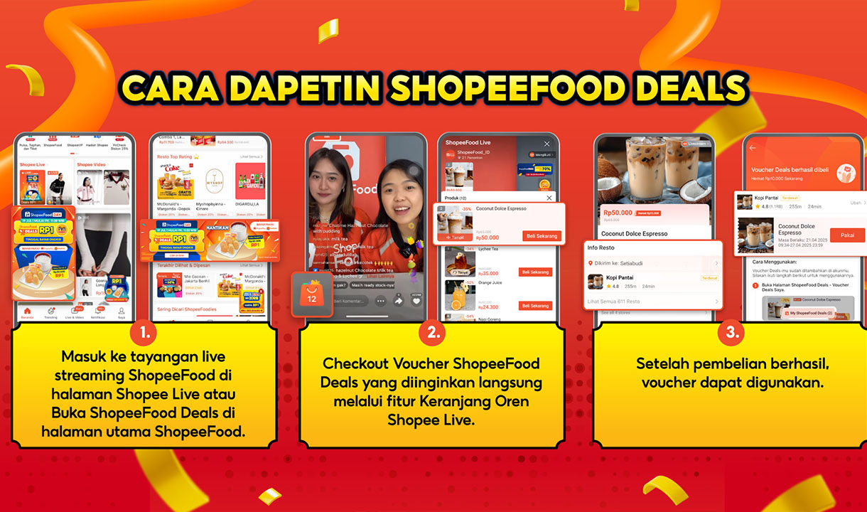 - Beragam Voucher ShopeeFood Deals bisa dilihat dan dibeli saat live streaming