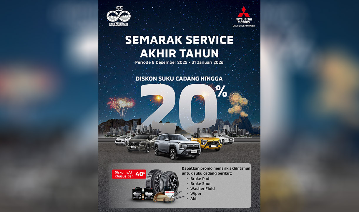 Program “Semarak Service Akhir Tahun” diselenggarakan di diler resmi Mitsubishi Motors dengan fasilitas 3S di seluruh Indonesia, dengan periode mulai tanggal 8 Desember2025 hingga 31 Januari 2026. Sementara kampanye “Kilau Tahun Baru” akan berlangsung pada 1 Desember 2025 hingga 31 Januari 2026.