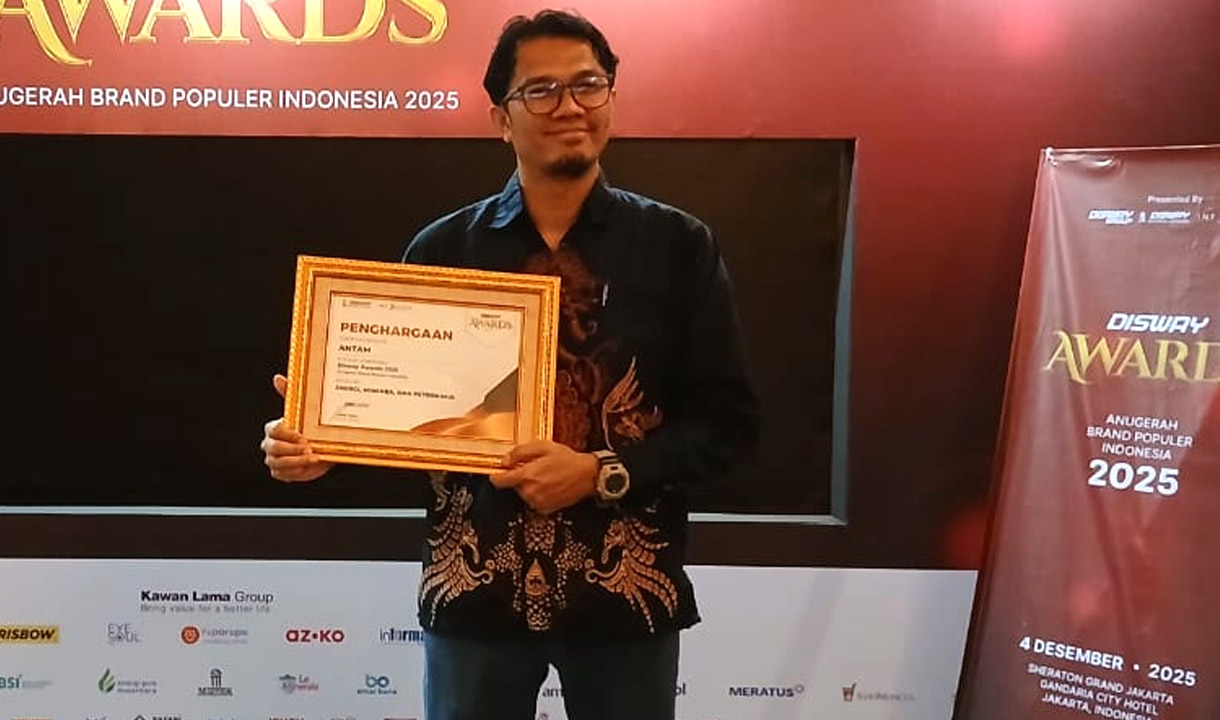PT Antam Tbk kembali menunjukkan kelasnya sebagai perusahaan tambang nasional dengan reputasi kuat. Atas capaian itu, Antam menerima apresiasi Disway Awards 2025-dok disway-