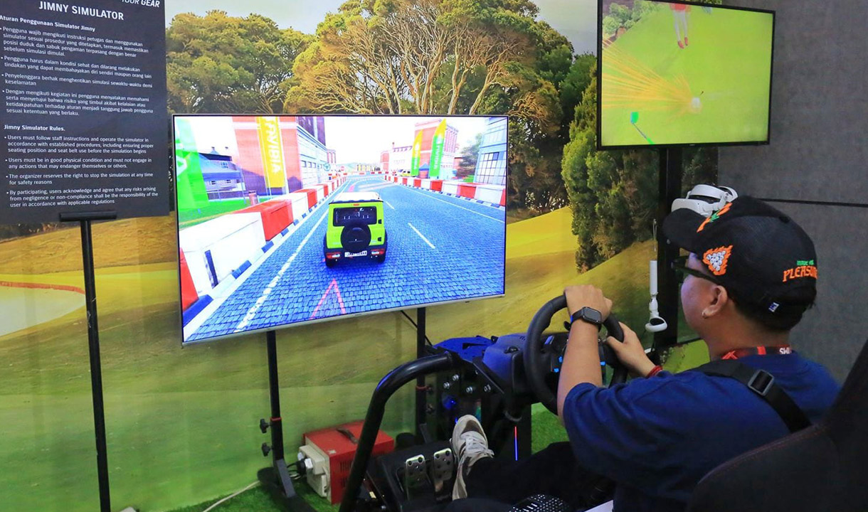 Tak kalah seru, pengunjung bisa mencoba Jimny Virtual Driving Offroad dan Jimny RC Offroad Challenge untuk merasakan sensasi mengendalikan ketangguhan Jimny melewati berbagai rintangan pada lintasan miniatur.-dok disway-