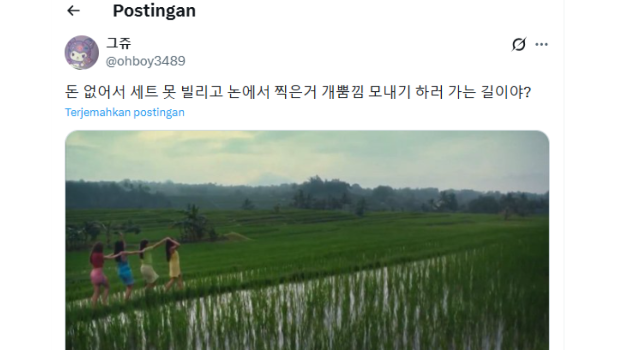 Di satu sisi, viral sebuah unggahan dari akun pengguna Korea menampilkan tangkapan layar video no na yang sedang berjalan-jalan di sawah dengan keterangan berikut.
