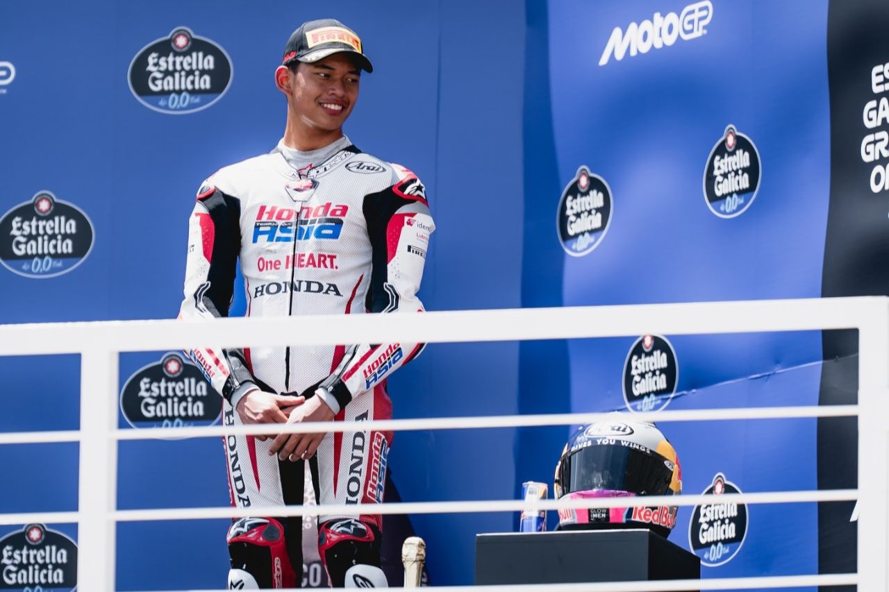 Veda Ega Pratama, bocah asal Wonosari, Yogyakarta, mengukir sejarah menjadi pembalap Indonesia pertama yang meraih podium 3 di Moto3 Brasil 2026.-Instagram/@veda_54-