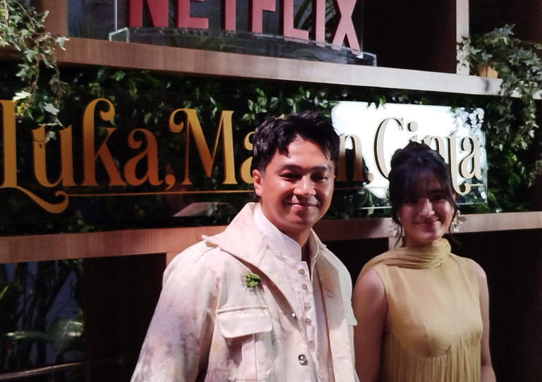 Hadir menyapa media ketika Netflix menggelar konferensi Pers Luka, Makan, Cinta bersama para pemeran dan kreator serial tersebut di Jakarta pada 15 April 2026.